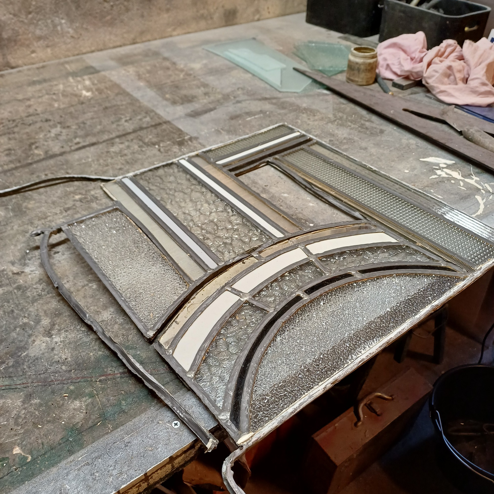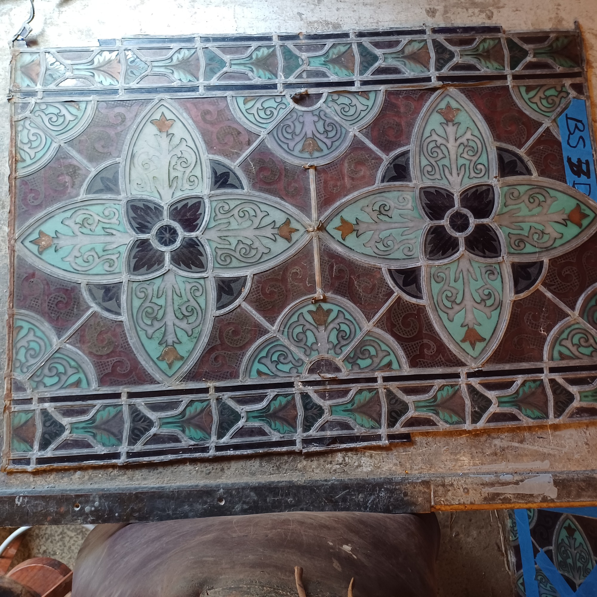 Vitrail à son arrivée à l'atelier